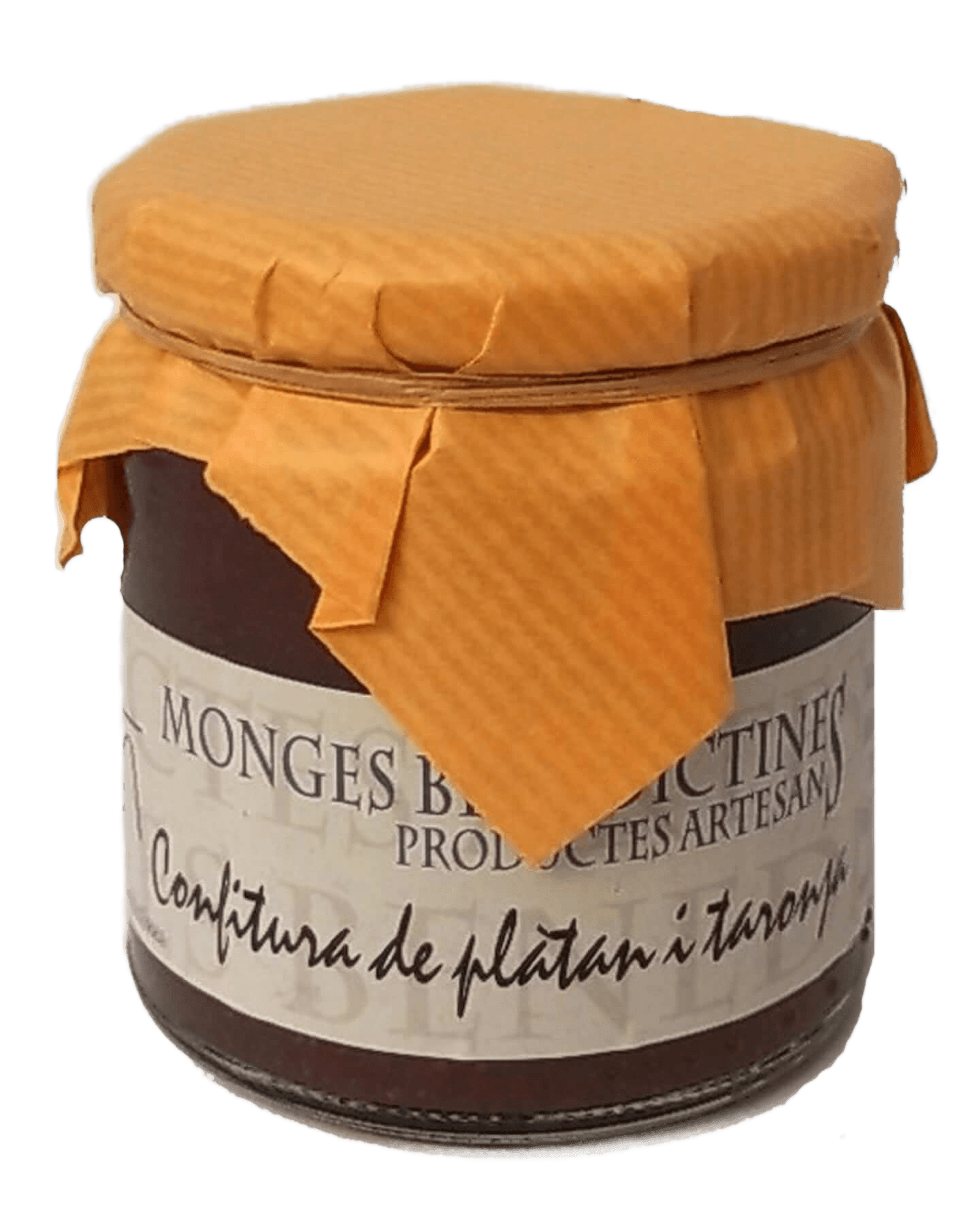 Pes: 280 gr.Ingredients: Plàtan i taronja 62% i sucre . Sense conservants ni additius. Aquestes confitures, les podreu adquirir directament al Monestir de la Santa Família de Manacor (Mallorca)