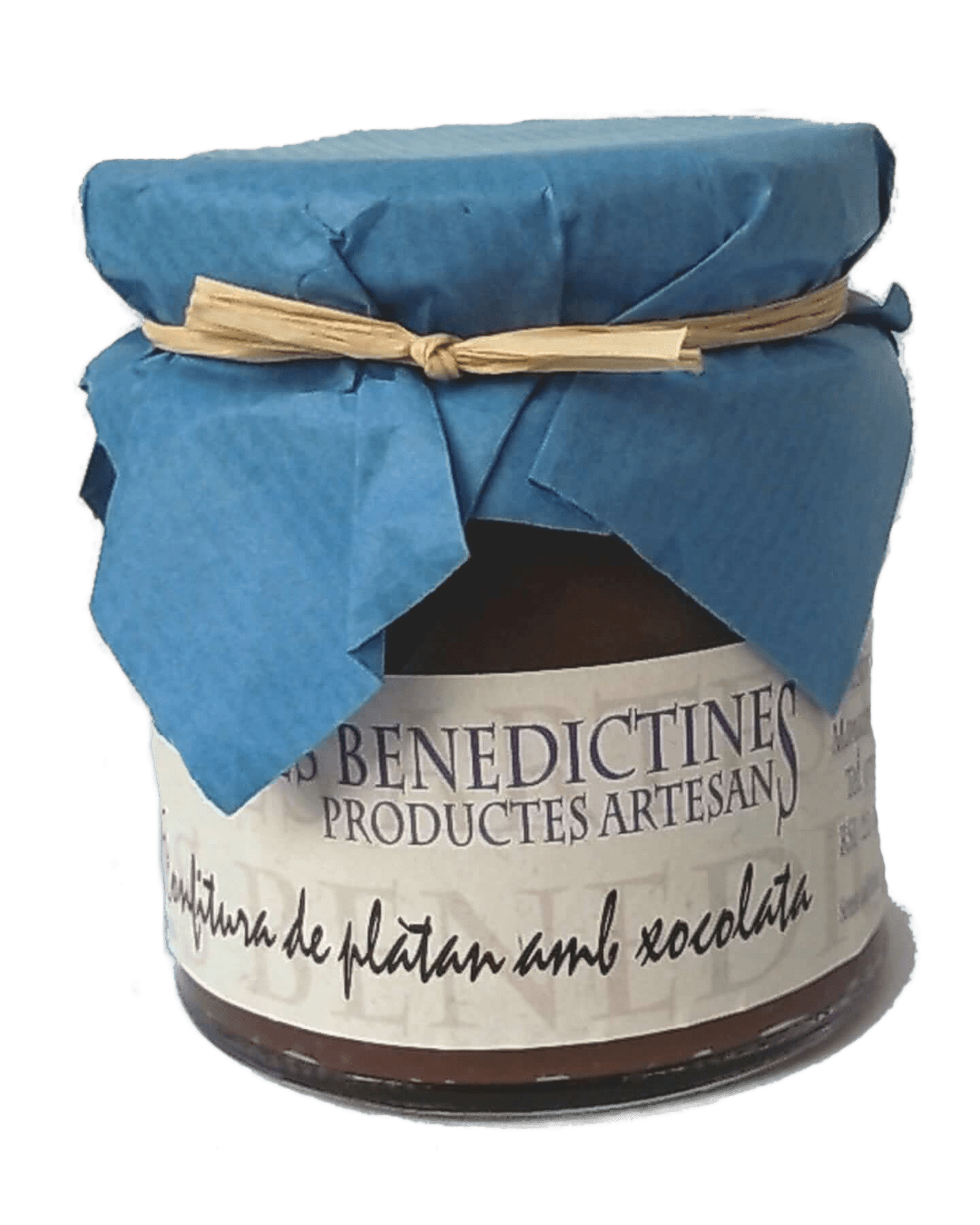 Pes: 280 gr.Ingredients: Plàtan 60%, sucre, xocolate, llimona i espècies: canyella i vainilla. Sense conservants ni additius.