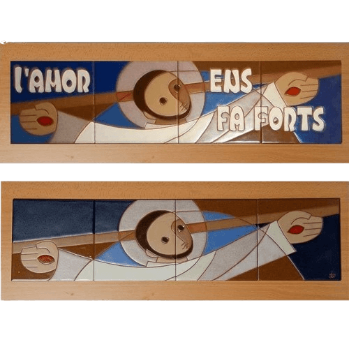 Rajoles pintades “a la gota” i cuites a baixa temperatura fins a 960º.