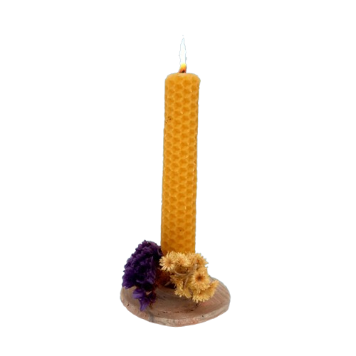 Espalmatoria de fang de colors amb ciri de cera natural.