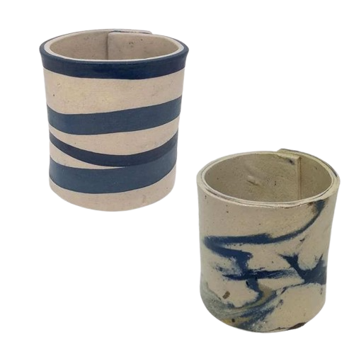 Peces de gres amb fangs de colors, cuites a alta temperatura, fins a 1.250º